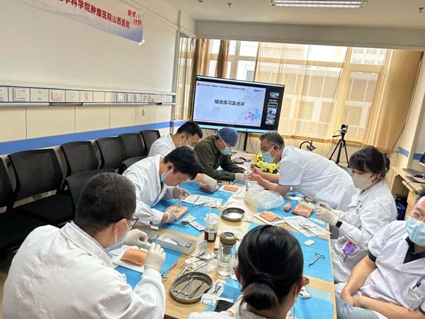 在分站点学员实际操作环节,各位医师就会议中提到的缝合技巧进行实际操作、练习,专家现场教授、指正,提升缝合技术。通过此次培训,参会人员进一步掌握了缝合技巧。