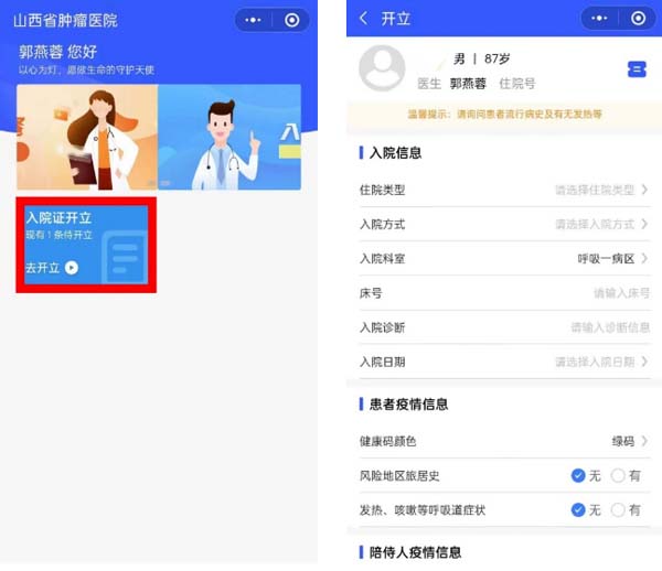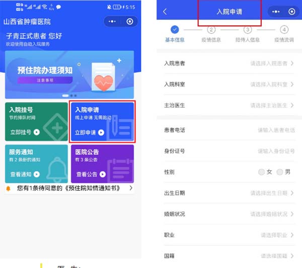 近日,为改善患者就医体验,医院住院部在前期已经开展住院患者手机自助入院的基础上,又开通了预住院患者手机自助入院功能。