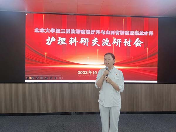 10月27日,中国医学科学院肿瘤医院山西医院(山西省肿瘤医院)放射治疗科举办护理科研交流研讨会,邀请北京大学第三医院护理部副主任王攀峰教授等专家传经授宝。我院放射治疗科护士长付佳、病区护士长、科研秘书等20余人参会。妇科放疗病区护士长李彦华主持会议。