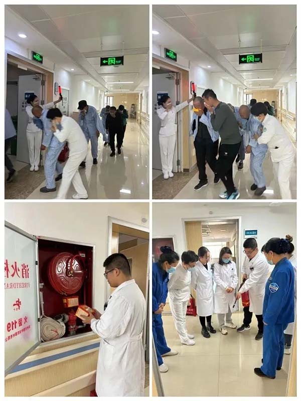 科室人员从临危不慌、报警方式、自救方法、疏散路线四个环节,进行了一次火情突发事件疏散演练。通过演练,不仅学习到消防安全相关知识并熟练掌握了消防器材的使用方法以及消防逃生常识,还增强了科室医务工作者消防安全意识及面对突发事件处置应变能力,提高了患者及家属的安全意识和紧急避险自救技能。