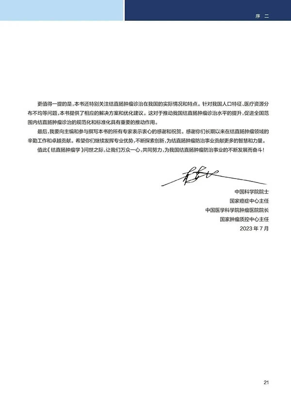 近日,由我院总院长王锡山教授与顾晋教授、丁克峰教授主编,人民卫生出版社出版的《结直肠肿瘤学》正式发行,并在2023中国整合肿瘤学大会大肠癌分会场暨中国抗癌协会第十八届全国大肠癌学术大会正式发布。该书汇集了中国抗癌协会大肠癌专委会成员集体智慧,也是王锡山总院长又一部精品力作,为我国结直肠肿瘤的基础研究和临床治疗提供了宝贵的知识和指导。