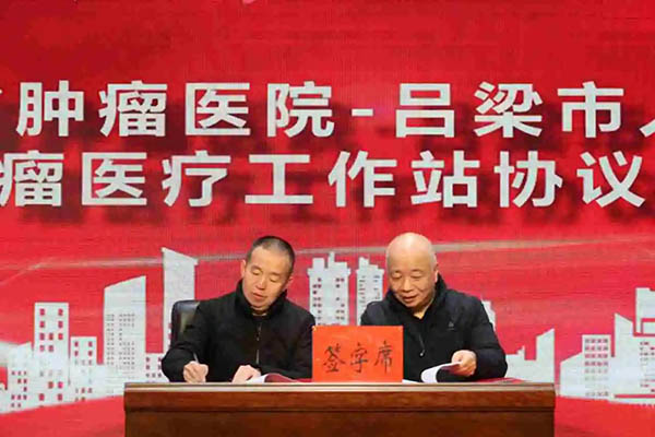 启动仪式上,举行了“山西省肿瘤医疗工作站”签约及授牌仪式。白文启副院长与吕梁市人民医院党委副书记、院长张沛刚签订了肿瘤医疗工作站协议。