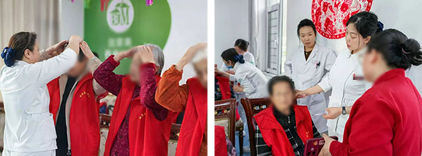 中医护理学组则充分发挥中医传统养生的优势,为老人们带来了丰富的中医养生体验。学组的老师们带领老人们一起做中医养生拍打操,一边示范标准的动作,一边详细讲解拍打过程中涉及的穴位位置和养生功效。老人们跟着老师的节奏,认真地做着每一个动作,在欢快的氛围中感受着传统中医养生的魅力。