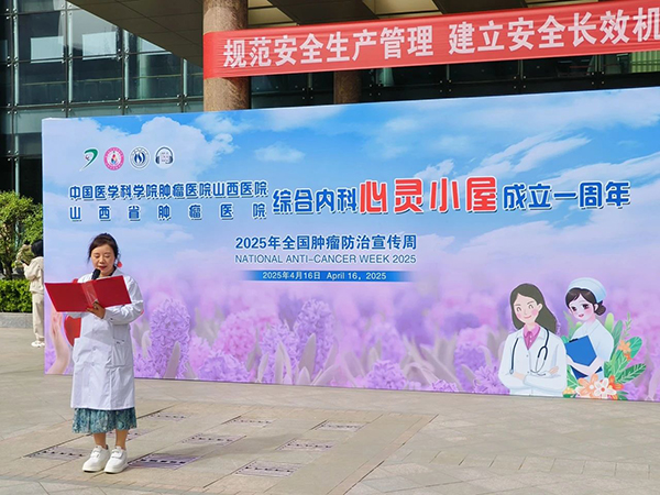 2025年4月16日,正值第31个全国肿瘤防治宣传周(4月15-21 日),中国医学科学院肿瘤医院山西医院(山西省肿瘤医院)综合内科“心灵小屋”以“一岁一礼,心光不息”为主题,举办一周年庆典暨“科学防癌?身心同治”科普义诊活动。活动紧密围绕全国肿瘤防治宣传周“科学防癌 健康生活”核心,将心理支持与肿瘤防治深度融合,通过心理疗愈展示、科普义诊及医患共庆,为肿瘤患者及家属打造“身心双护”的温暖场景。山西医科大学人文学院院长邓蕊、书记姚尚满,我院医务科科长郝志英、预防保健科副科长石樱桃(主持工作)、团委书记刘洁、山西日报社记者王晓艳,健康之声主持人小露等嘉宾莅临现场,与医护人员、患者及家属共同见证“心灵小屋”在肿瘤防治领域的温情实践。