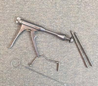 上世纪九十年代的消化道吻合器,广泛用于胃肠手术,我院展出的这套管型消化道吻合器是应用钛钉拉杆侧倾转动进行吻合,吻合口牢度可靠,止血效果及血运良好,操作方便。因此,使用消化道吻合器不仅可以缩短手术时间,减少出血量,手术创伤轻,并可提高手术质量,减少并发症。