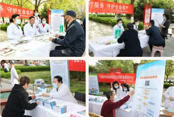 肿瘤防控办公室、肿瘤体检中心、宁养院向广大患者及群众进行肿瘤防治知识普及、宣教及筛查。